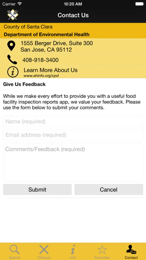 SCCDineOut provides easy access to food facility inspection results within Santa Clara County and is the official app for the Santa Clara County Department of Environmental Health.