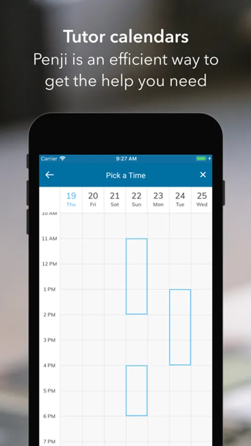 Penji is the central hub for tutoring, advising, and other support resources on campus. We partner with support centers at your university, allowing them to provide a modern, mobile-first, and remote-friendly experience for scheduling tutors, mentors, and coaches. Book appointments, attend drop-in hours, register for large-group sessions, meet study groups, and more, all from the app.