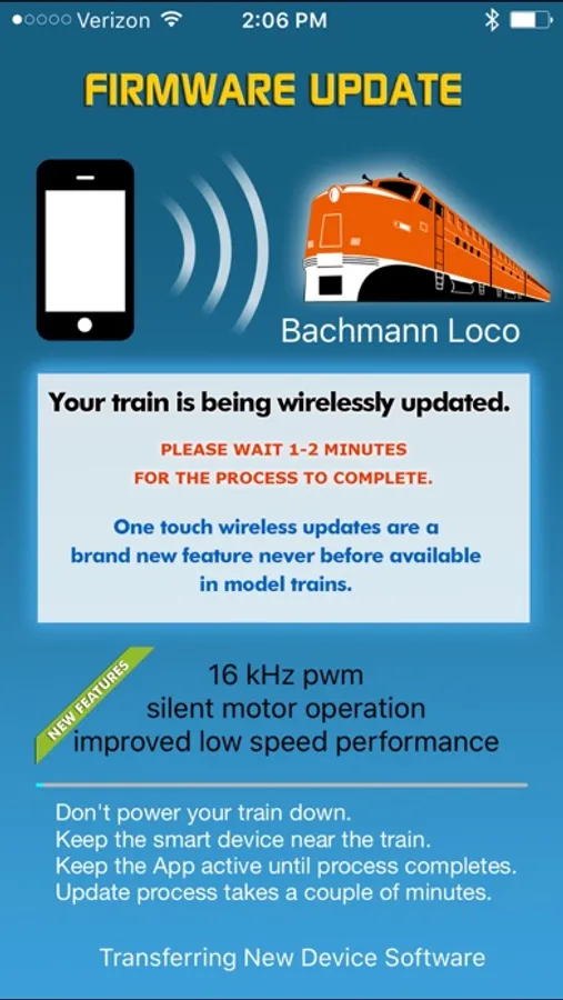 E-Z App allows you to control any Bachmann E-Z App train directly from your Apple mobile device. The app has a simple easy-to-use interface to control speed, direction, lights, and realistic train sounds built right into the app. Control as many trains as you want simultaneously from up to 100 ft, and enjoy updated features through regular app updates. Also use E-Z App to update the firmware in your Bachmann E-Z App train to take advantage of all the latest features.