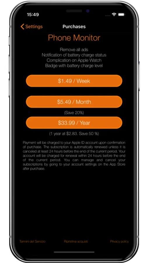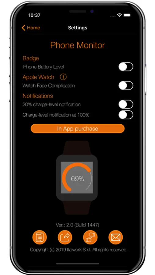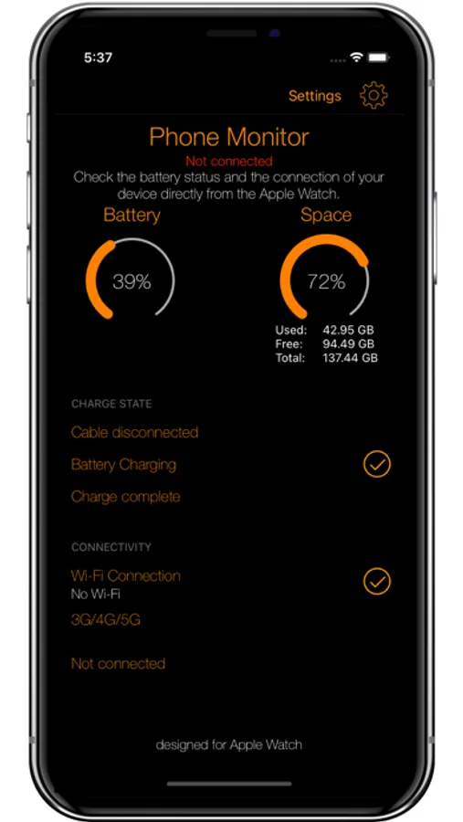 - Check on the Apple watch the battery status, data connection and charge level when you are away from your iPhone.