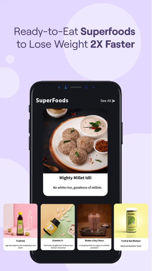 Weight loss or Disease management is 80% Nutrition and 20% Exercise. The app provides you with diet plans designed by your personal coaches according to your lifestyle,eating habits and medical conditions. Also, we make it easier for you to eat healthy by adding our curated healthy Superfoods to your diet.