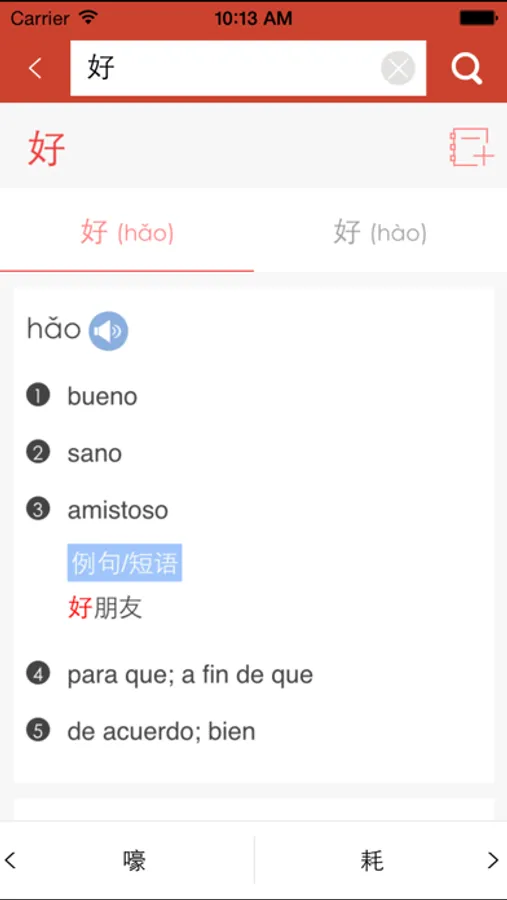 海笛携手外研社官方正版发布,具有通知栏快捷查词等便捷查词功能,还有西班牙语/汉语词条均可真人发音、西班牙语例句发音、生词收藏和复习等辅助学习功能。选择正版西班牙语词典,学习更有保障!(版权所有,盗版必究)
