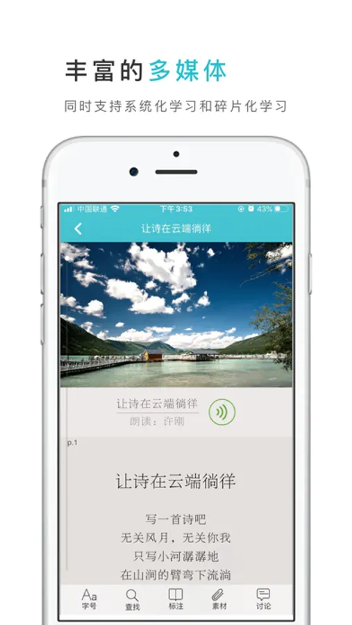 【精致内容】精美的图片、画廊、动画、视频、音频、地图定位等。丰富的媒体内容,让您享受学习的过程。