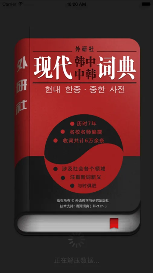 海笛携手外研社官方正版发布,具有通知栏快捷查词等便捷查词功能,还有韩中、中韩词条均可真人发音、韩语例句发音、生词收藏和复习等辅助学习功能。选择正版韩语词典,学习更有保障!(版权所有,盗版必究)