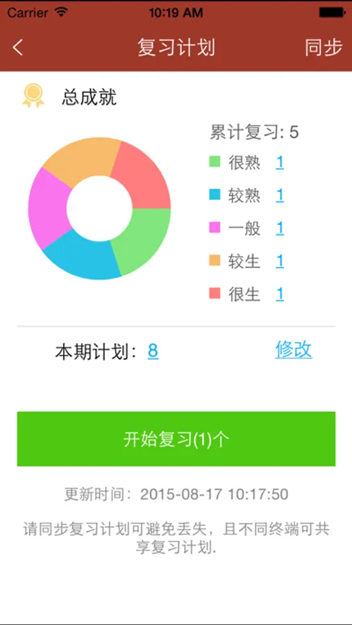 (5)云生词本:采用云端同步技术,为用户提供生词同步学习服务,可以收藏和复习生词。