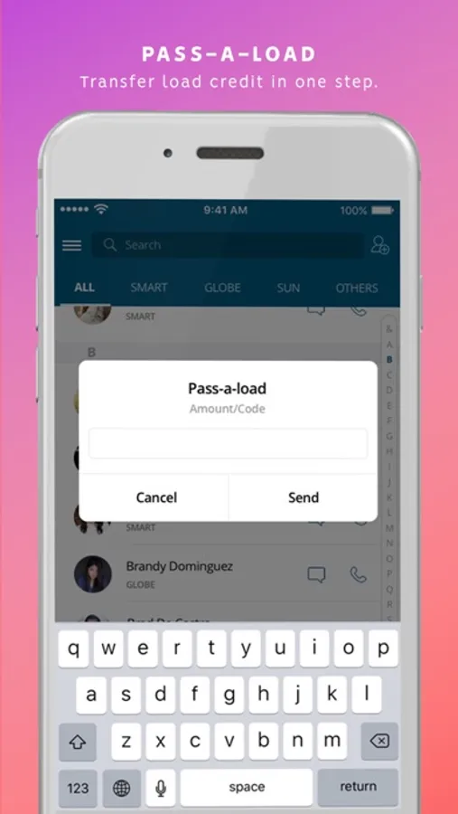 Pass-A-Load - Send load to the right contact number directly from the app.