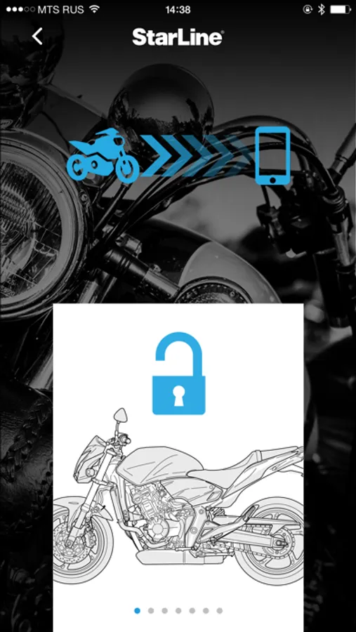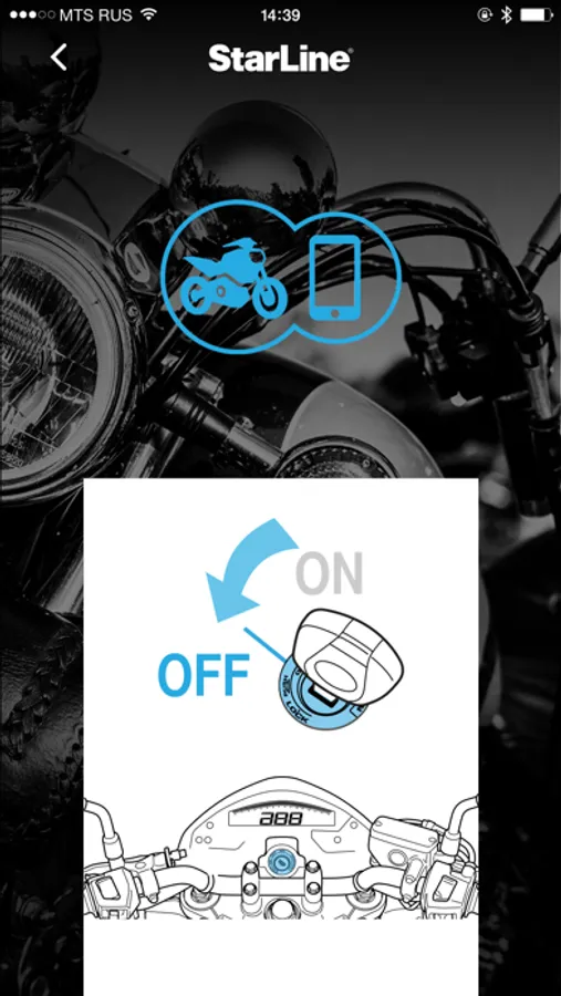 Скачайте бесплатное мобильное приложение StarLine, чтобы управлять охраной вашего мотоцикла с использованием технологии Bluetooth Smart.