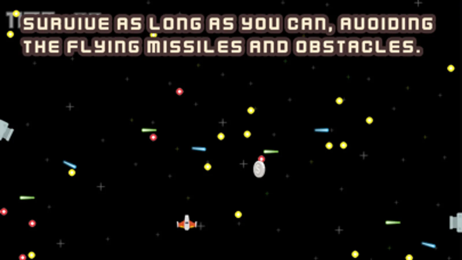 Survive as long as you can, avoiding the flying missiles and obstacles.