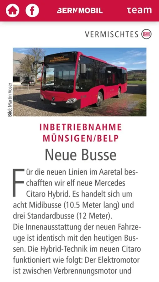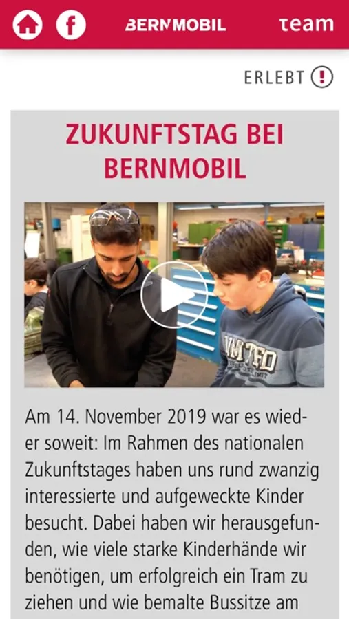 Diese App bietet Mitarbeitenden von BERNMOBIL und Interessierten Einblicke in den Betriebsalltag, berichtet über aktuelle Themen und Personelles.