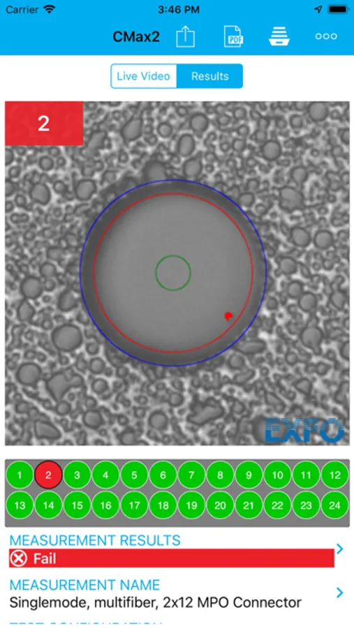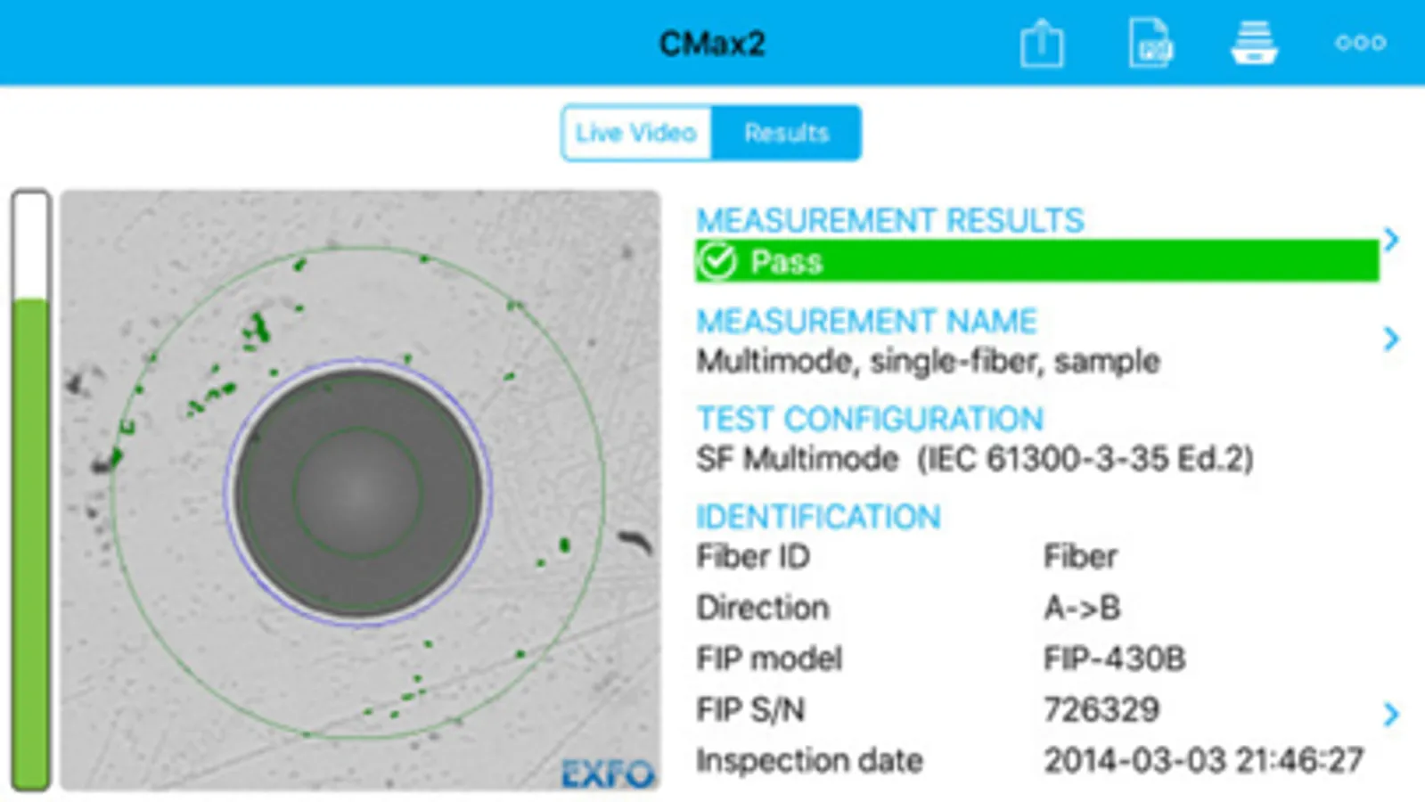 ConnectorMax is the perfect fiber connector certification application for smart devices. Paired with EXFO’s ConnectorMax fully automated wireless fiber inspection probes, this app provides an immediate and accurate health status of connector enfaces to efficiently pinpoint faulty elements impacting your network performance. And all this with unmatched user-experience.