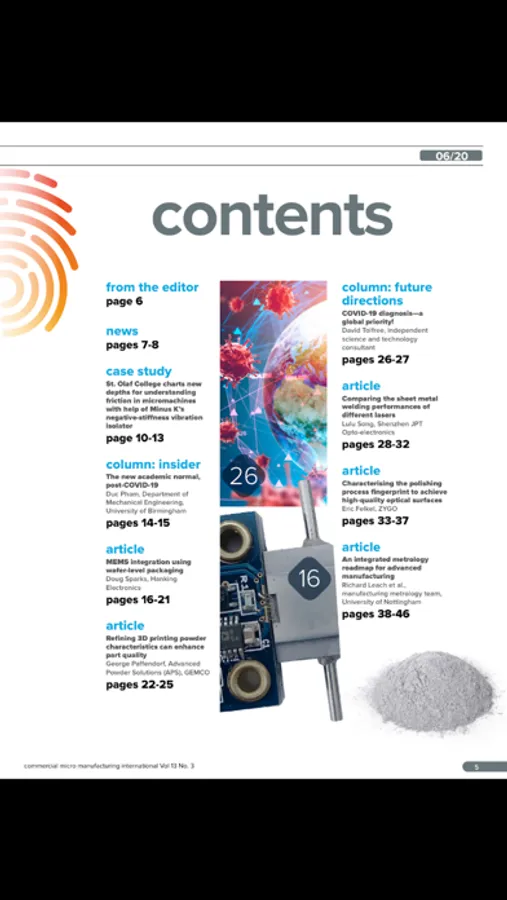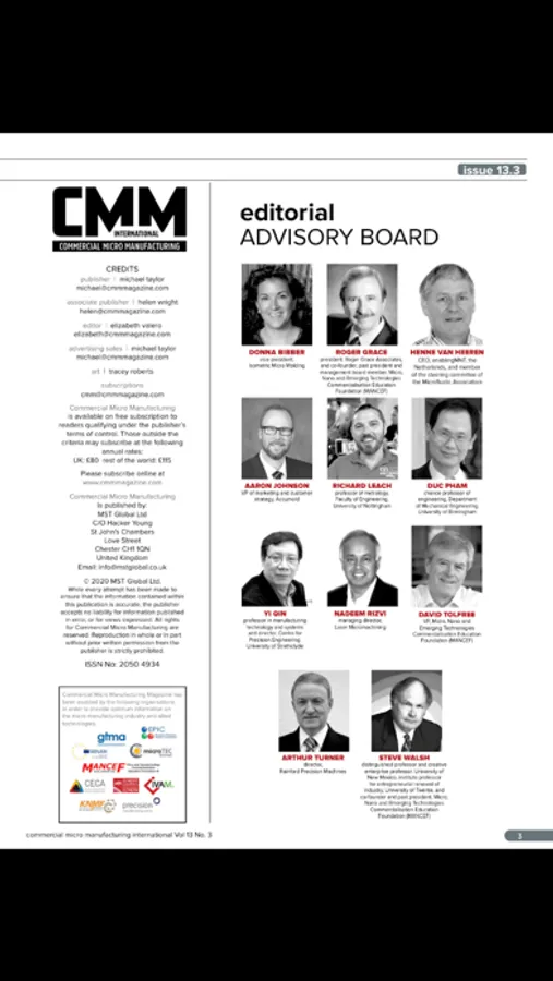 Commercial Micro Manufacturing (CMM) magazine serves an international audience of micro, high precision and MEMS engineers helping them identify, evaluate and select the most commercially viable manufacturing technologies for their business.