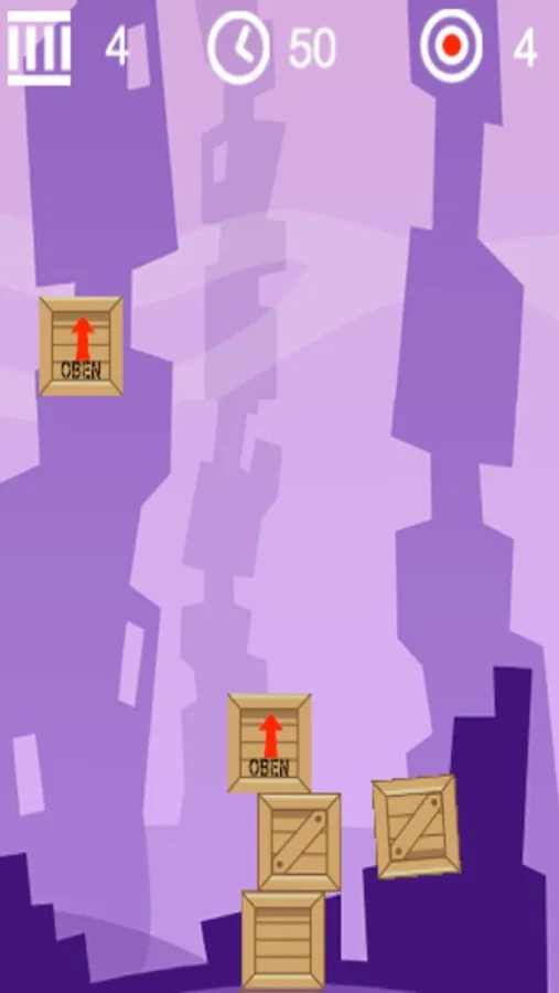 Stapel die Holz Kisten und Fässer zu einem großen Turm. Das Spiel hat 3 Einstellungen: