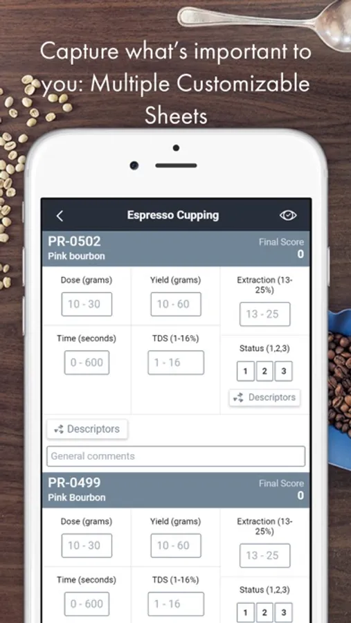 Use the right sheet for the right scenario. Cropster Cup includes sheets from green buying to production, from cupping espresso to filter coffee and more. You can even create sheets personalized to your requirements.