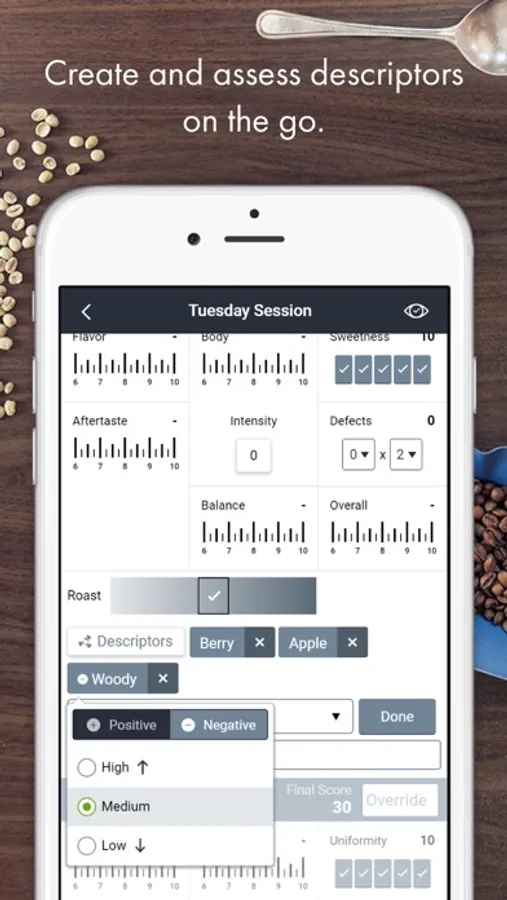 Cropster Cup creates reports and panel results. The quality session tool organizes your information so you can easily find and review results for cuppings for all your coffees, including those you cupped in the past.