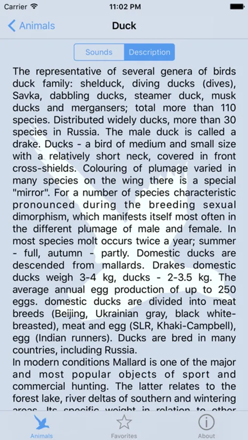 Almost 100 sounds of different kinds of ducks, about 100 sounds of geese and more than 100 sounds of other different birds. If you are a hunter, photographer, or you are interested in wild birds - our application is perfect for you and your activity!