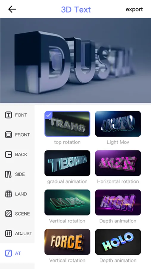 3D text can make the text you input into text with three-dimensional visual sense. The software uses a professional 3D engine to create a real three-dimensional effect. You can make the text as dazzling as the title subtitles of Hollywood blockbusters. It can make three-dimensional text pictures, text expressions, text videos, and supports one-click sharing of WeChat. It can be used as WeChat three-dimensional font, and you can also permanently save it to the mobile phone album.