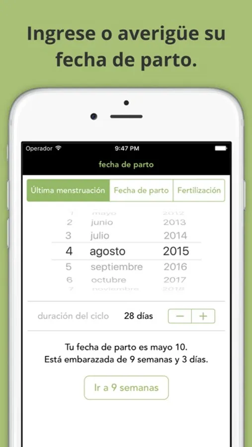 • Utilizar la calculadora de fecha de parto para ingresar o averiguar su fecha.