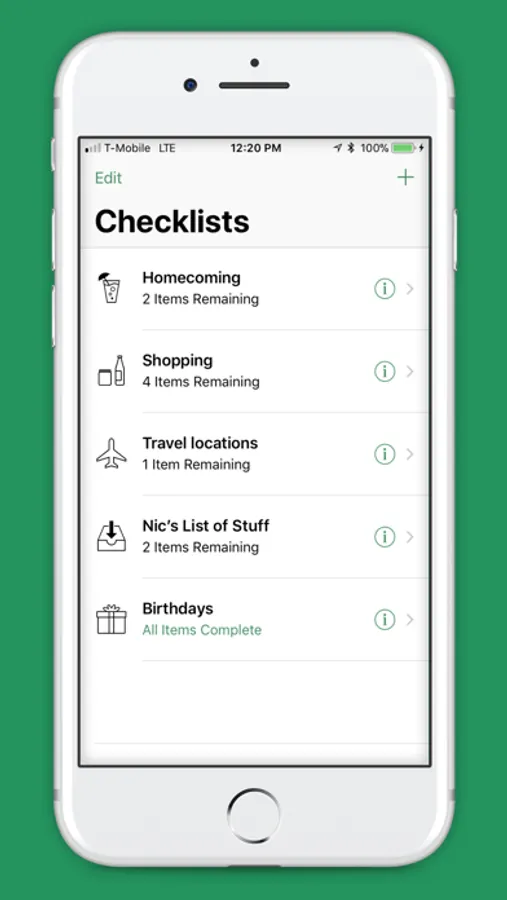 Manage multiple checklists, place checkmarks next to items as you complete them, and even set reminders for yourself to complete tasks in the future.