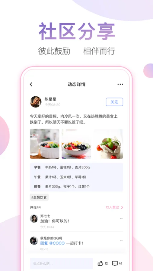 5、社区分享:与数百万社区达人分享减肥数据和经验,互相学习,彼此鼓励,共同进步