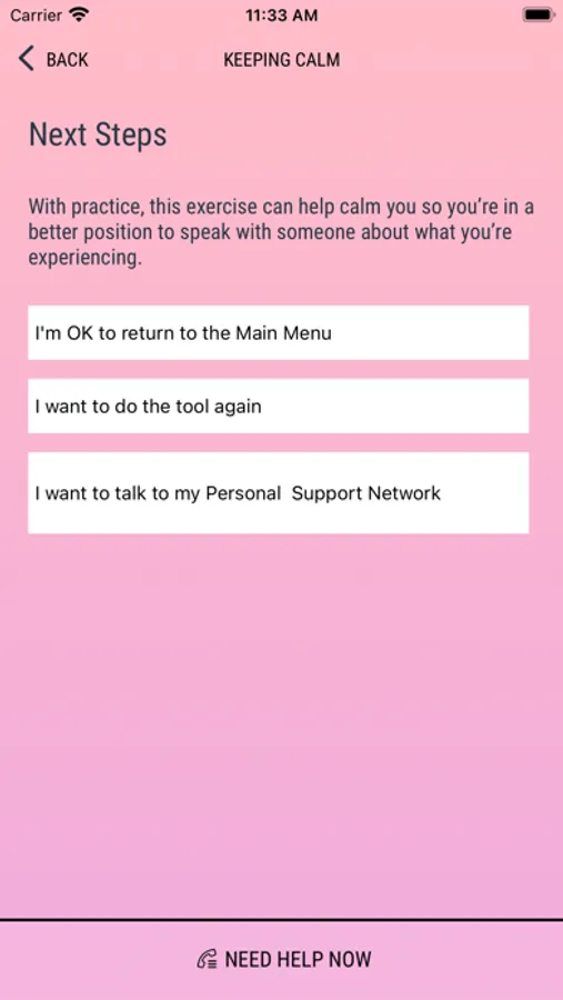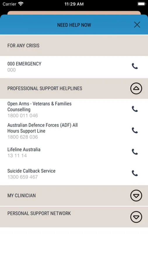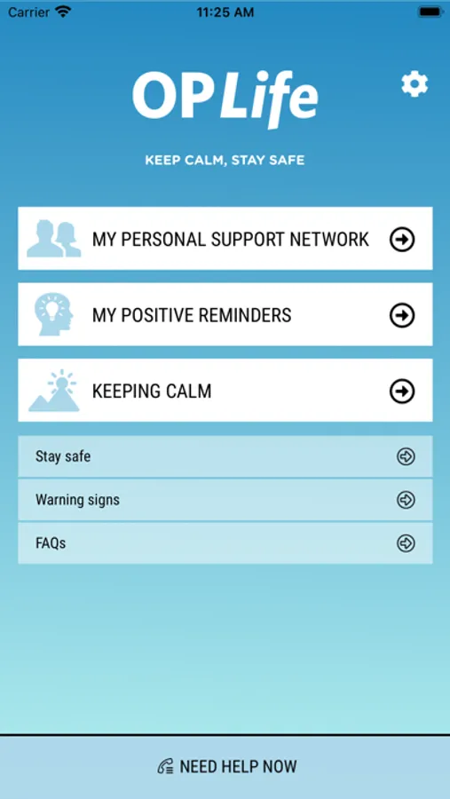 The app supports clinical care by offering easy access to emergency and professional support services and a personal support network that users can call when help is needed. Operation Life also features two cognitive behavioural therapy tools to help users sufficiently self-manage their thoughts – grounding and positive reminders. The app also offers helpful advice on staying safe and when to seek help.