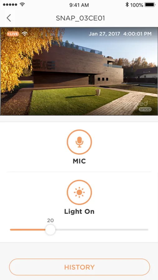 The ultra-wide angle HD camera captures high-quality video that can be viewed instantly or stored in the cloud. Optional monthly service plans provide motion detection and up to 30 days of HD recording. Customize motion zones and receive alerts when activity is detected on your iOS device. Snap provides peace of mind at home, the office or on the go.