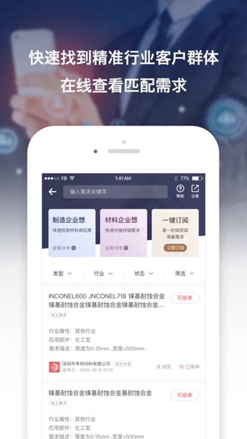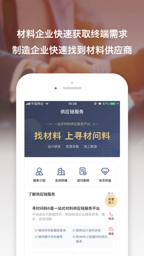 寻材问料®是材料解决方案一站式服务平台,致力于促进新材料产学研用的有效融合,打造材料界和制造业的“互联网+新材料”连接平台,打造创新创业的“双创”服务平台,旨在为制造业提高效率、降低成本、促进创新、优化资源配置。