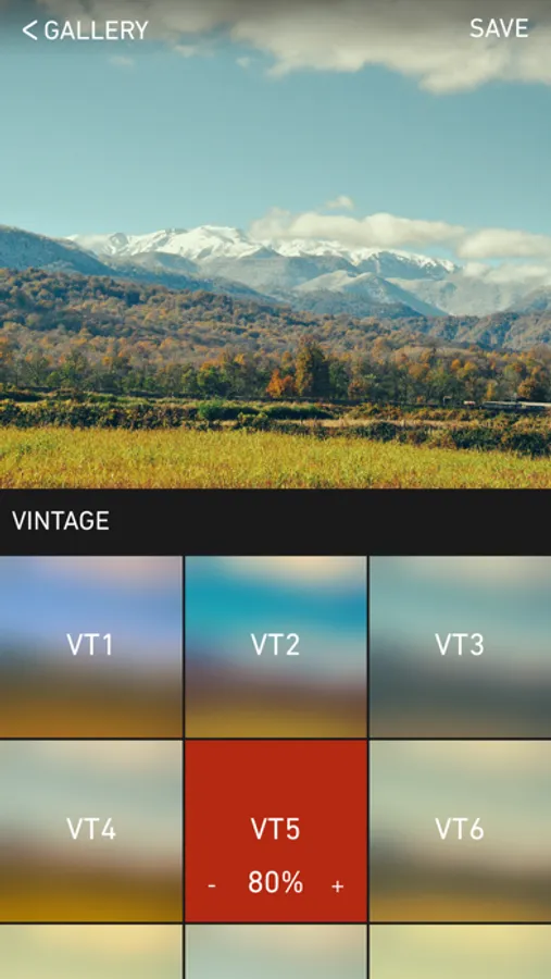 - 64 Hollywood quality color-correction filters divided into 8 groups: Cinema, Effects, Vintage, Antique, Pastel, Split/Tone, Monotone