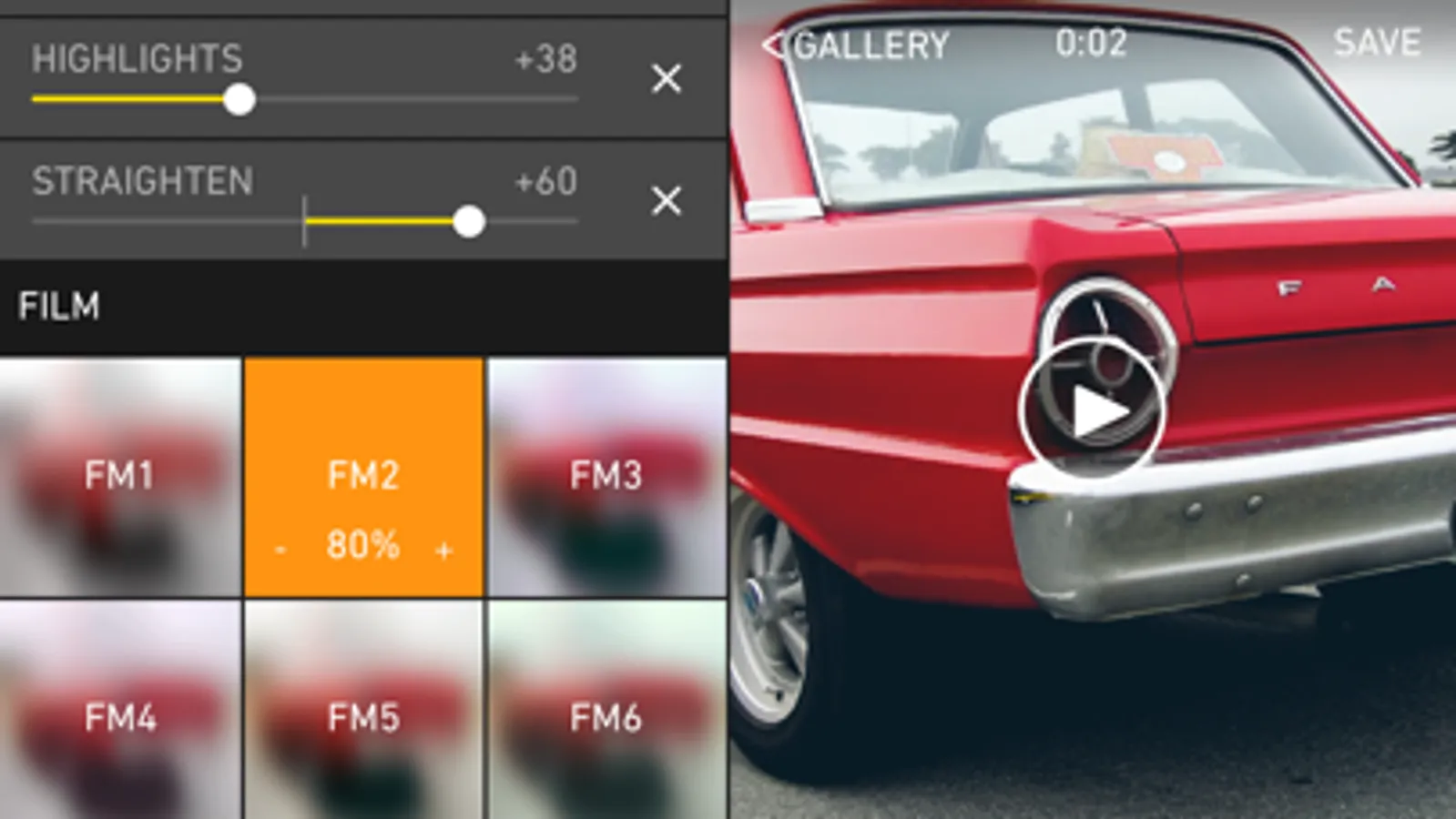 - unified Photo/Video editor - all filters/adjustments can be applied to both Photos and Videos