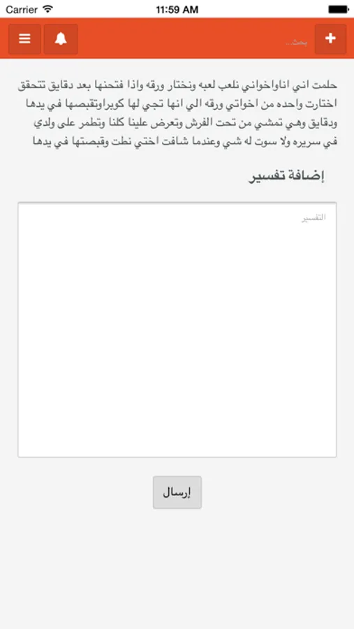 تطبيق تفسير الأحلام هو أول تطبيق عربي متخصص بتفسير الأحلام والمنامات. يضمّ هذا التطبيق نخبة من المفسيرين لديهم خبرة واسعة في هذا المجال وهم يعتمدون على مراجع موثوقة في هذا المجال كابن سيرين والنابلسي وغيرهم.