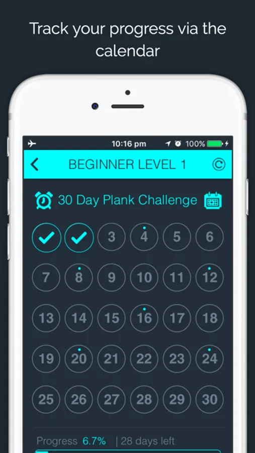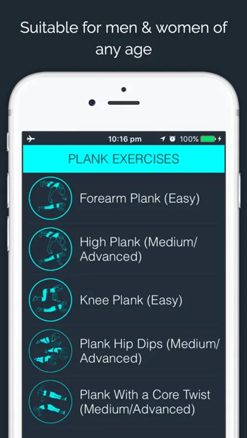 The 30 Day Plank Challenge is a simple 30 day exercise plan, where you do a set number of plank exercises each day with rest days thrown in! The workout increases intensity slowly and day 30 will test anyone. In total the app has 6 workouts with 8 plank exercise variations. The workouts and exercises are suitable for both men and women of any age and fitness levels.