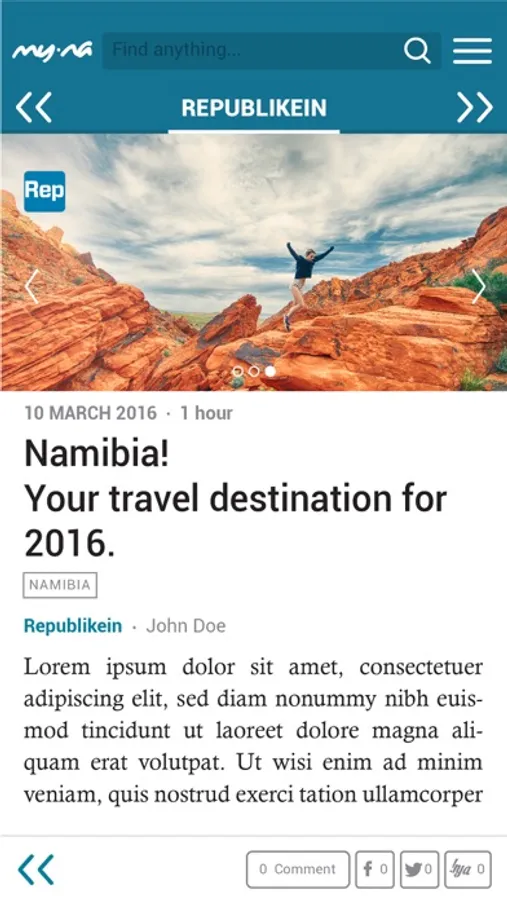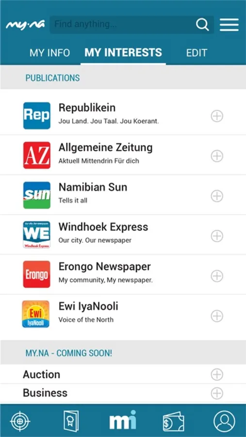 An informative app that gives its users access to DailyNews from all the Namibia Media Holdings publications:Erongo,The Sun,Republikein,Allgemeine Zeitung,Ewi,,aswell as Republikein and Daily Weather Updates.