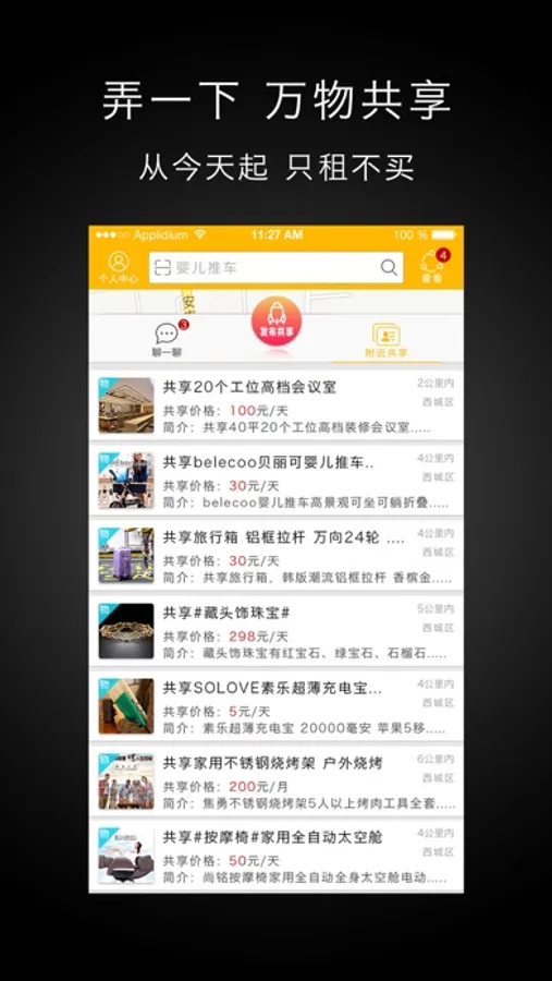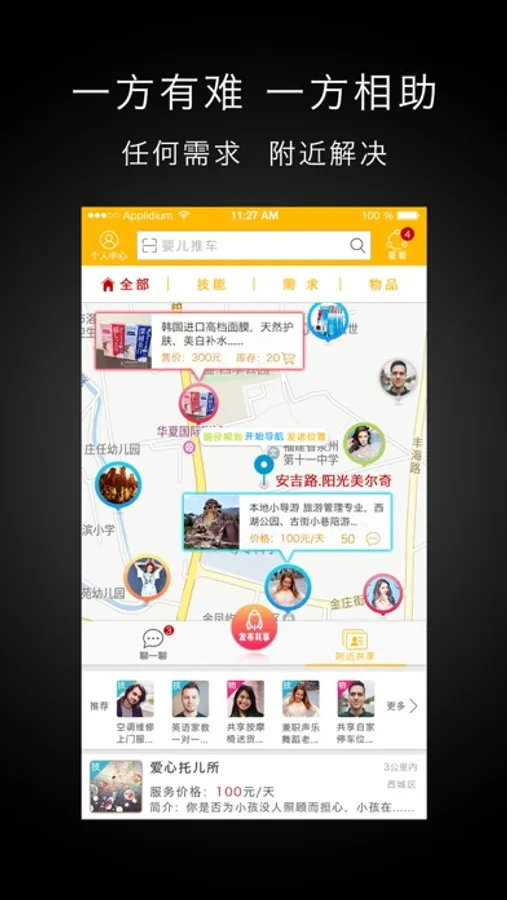 自主发布,自由定价,轻松管理共享物品、技能。基于地理定位,任何需求均可第一时间就近解决。