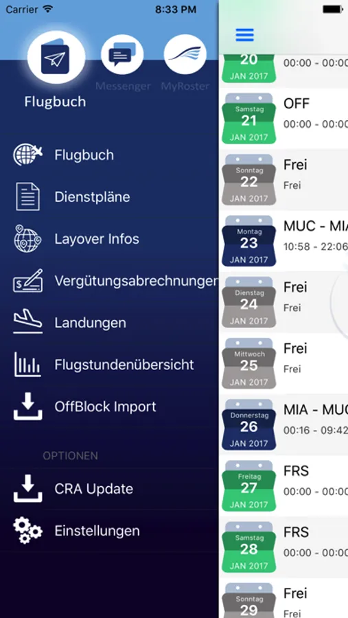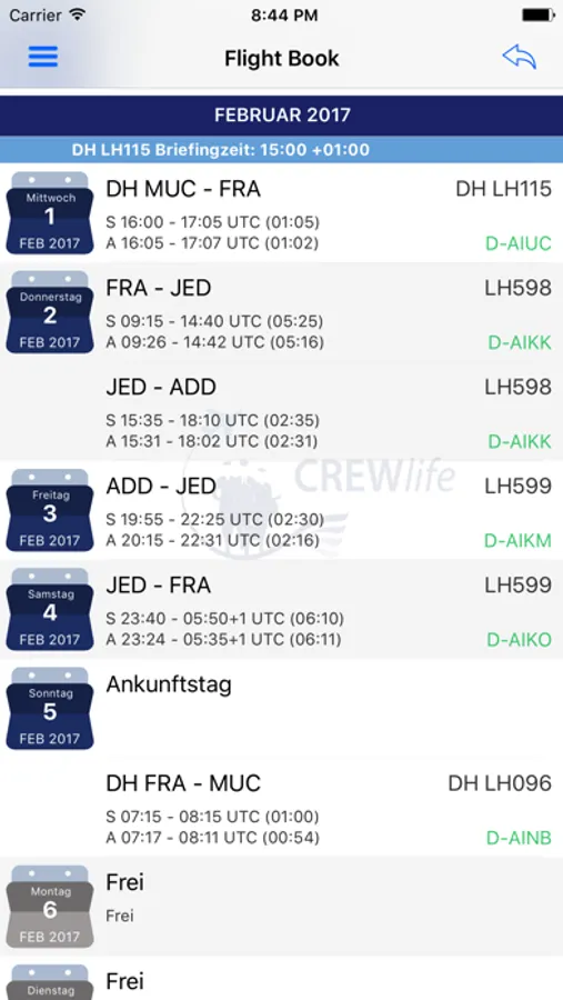 Behalte die Übersicht über Deine Flüge, Crews, Flugdaten, Layovers.