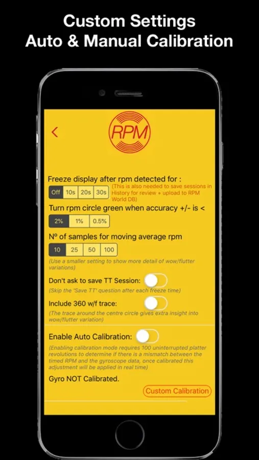 The RPM realtime display is reliant on the iPhones gyroscope accuracy, if you suspect yours isn't quite right then you can now use Calibration Mode to auto test and then apply any necessary correction in real time.