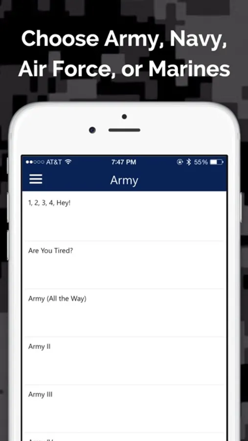 Listen to running jody calls old and new from the four major military branches of the United States, all in one place. Easily sort through the app to find the exact cadence you're looking for. Save your favorite cadences for offline listening to keep you motivated during grueling workouts!