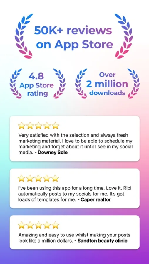 Ripl lets you easily create, post, schedule, and track professional-looking social content in just minutes.