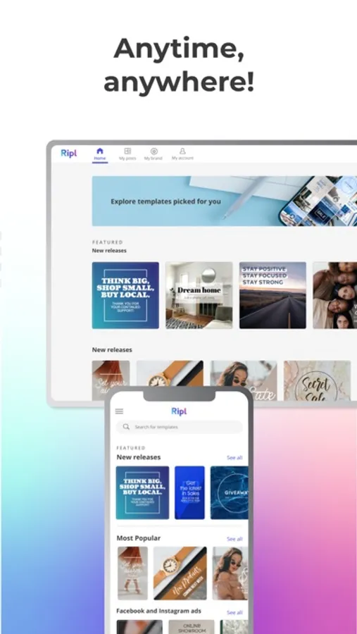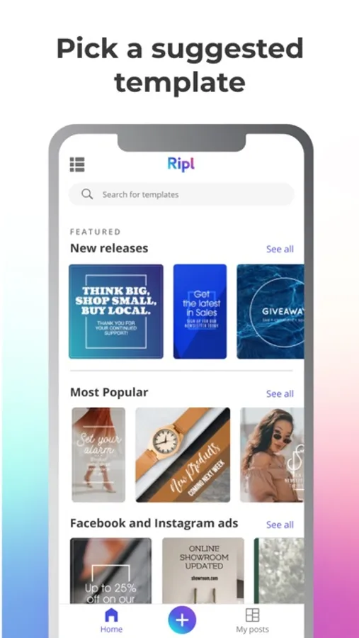 Ripl's templates are made to help your business stand out in Instagram stories, Facebook ads, or social flyers.