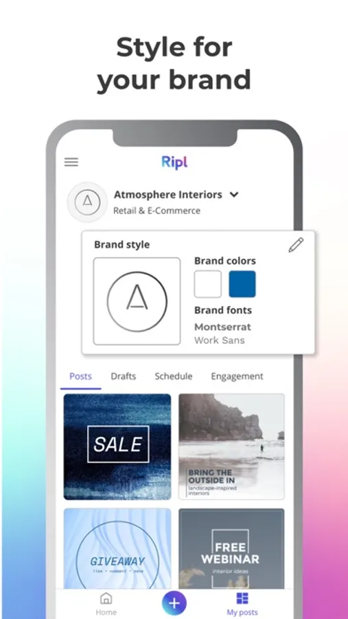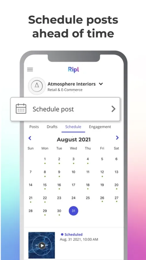 Ripl’s mobile and desktop browser apps make it easy to create new posts, edit drafts, and schedule to your social channels wherever you are.