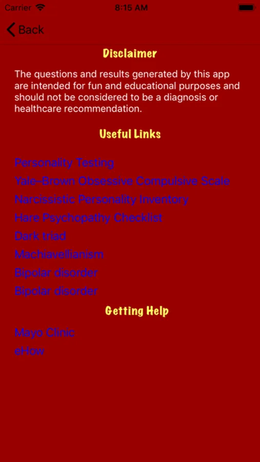 Have you ever wondered if you had a mental disorder? Do friends call you crazy? It’s time to stop wondering. Take these simple tests and compare with other users. If you’re worried about friends or a lover, test them also. Besides the “Dark Triad” of personalities, Machiavellianism, narcissism, and psychopathy, the app also tests for bipolar and obsessive-compulsive disorders. Have fun but answer truthfully.