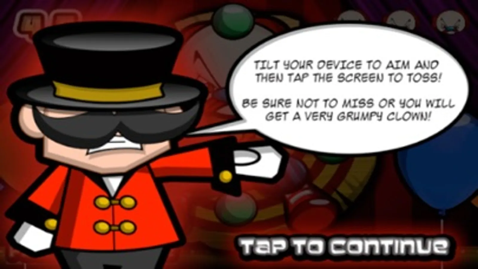 Tilt the device to aim and then tap the screen to throw away the knifes. Be sure not to miss or you will get a very grumpy clown!