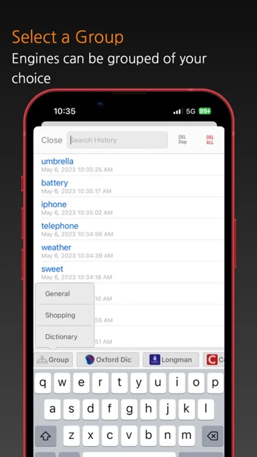 * Long Press appicon, type keywords once, and just Touch, Touch, Touch