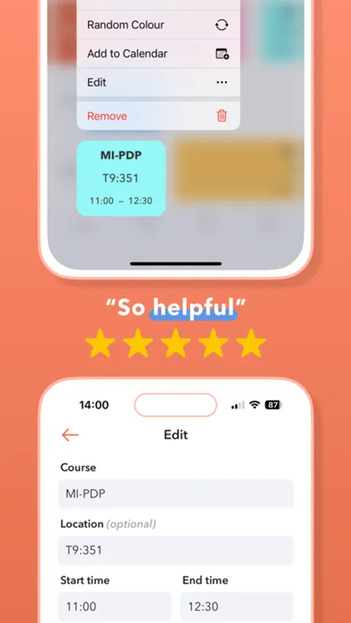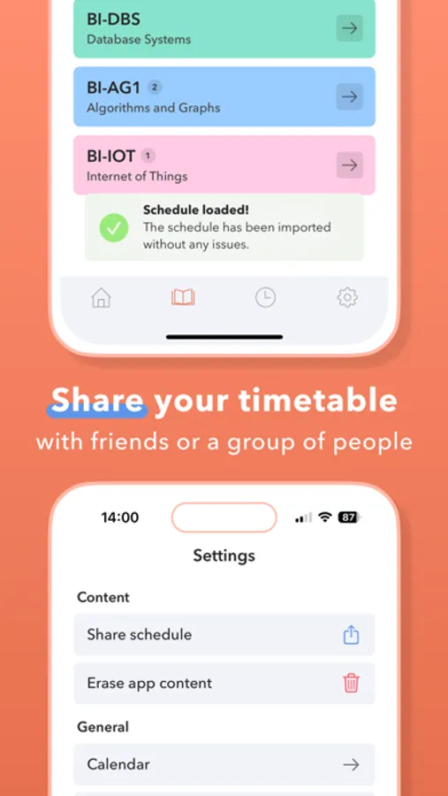 - check, edit, and share your timetable