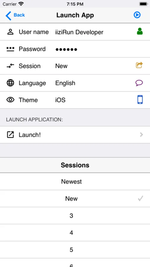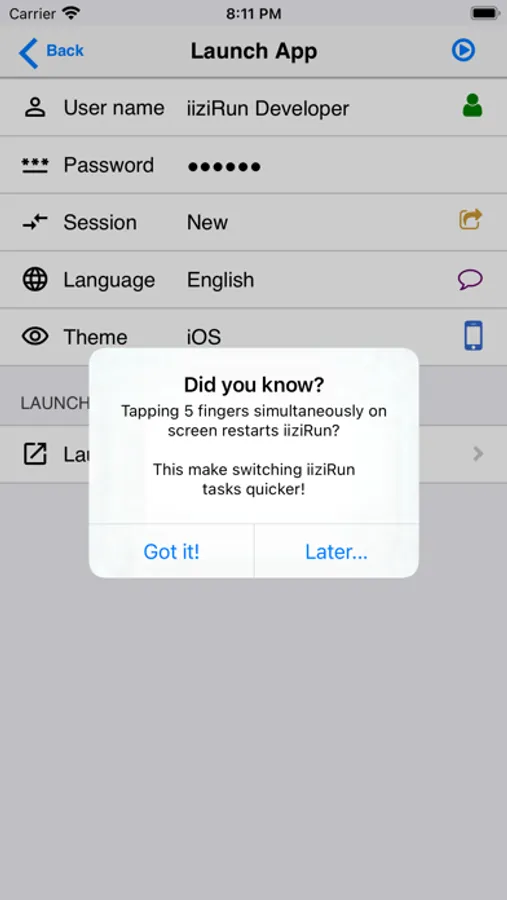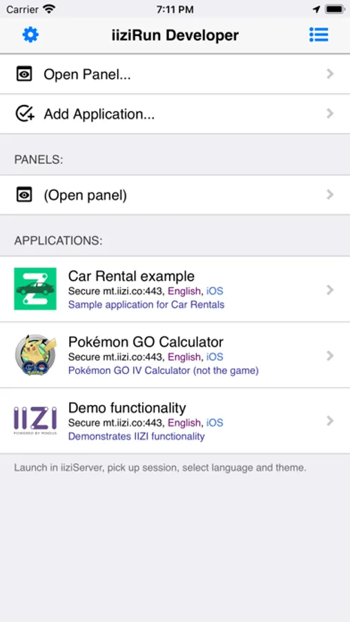 iiziRun Developer is used to test UI designs developed using iiziGo. It also runs iiziApp's from an iiziServer without having to submit the app to App Store.