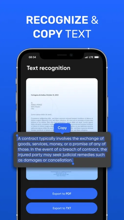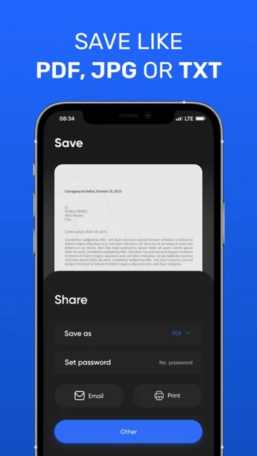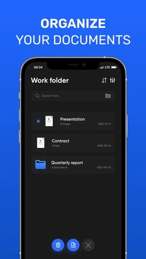 Scan documents, receipts, driver's licenses, books, etc. with your device and convert them to PDF / JPG / TXT files. Store and share files securely.