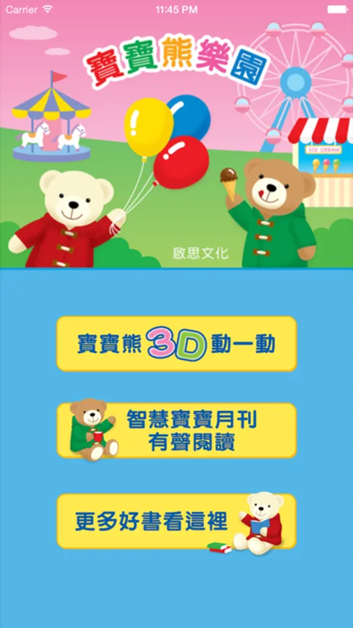 這是一個可以聽故事、玩拼圖、著色和寶寶熊玩3D互動及分享的幼兒益智多功能互動APP。