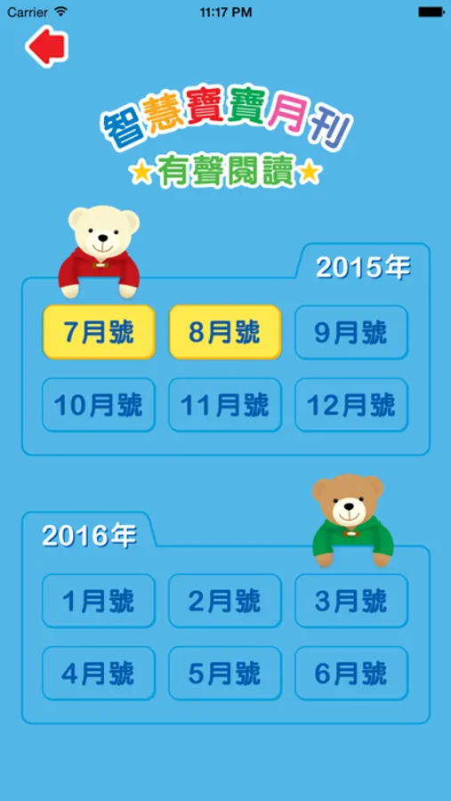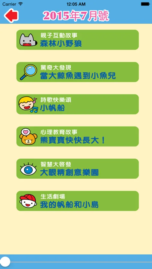 1. 開始聽故事囉! 請點選『智慧寶寶月刊有聲閱讀』,就可以聽你想聽的故事喔!
