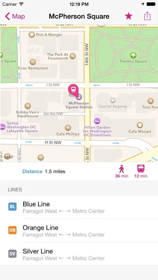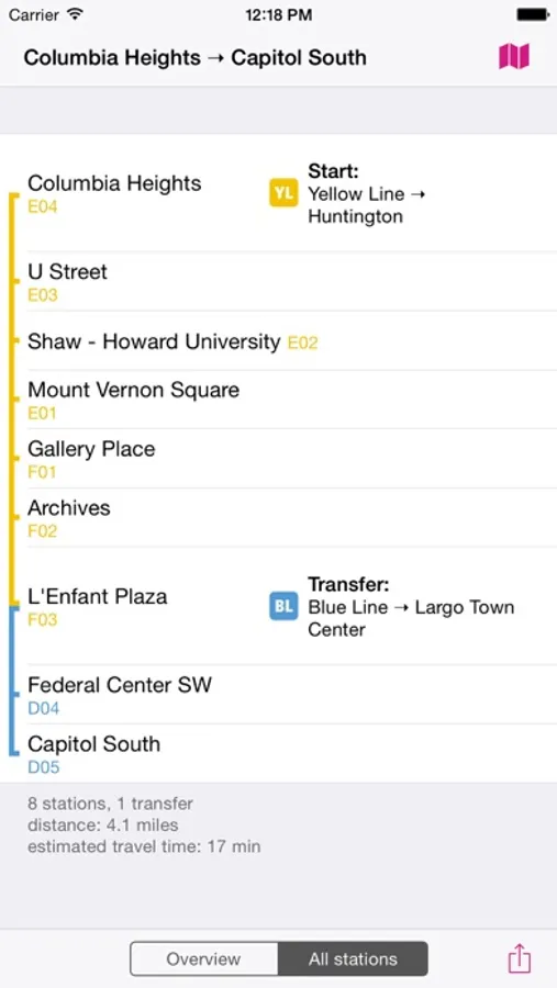 ROUTE PLANNER - instantly finds the fastest route and displays it on the map including transfer stations.