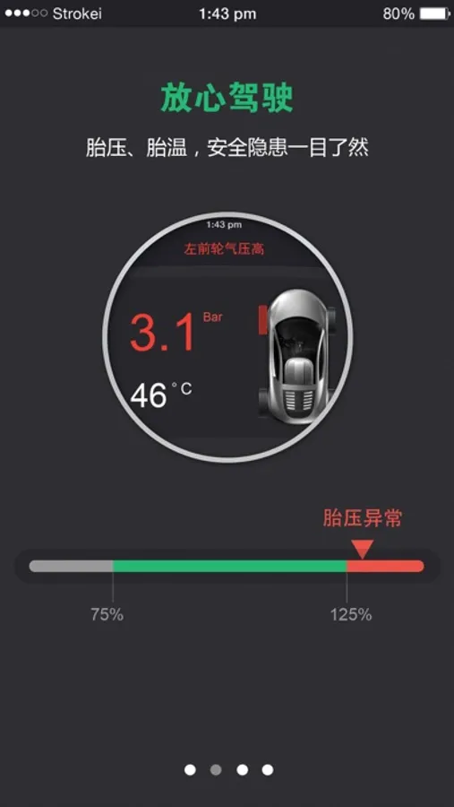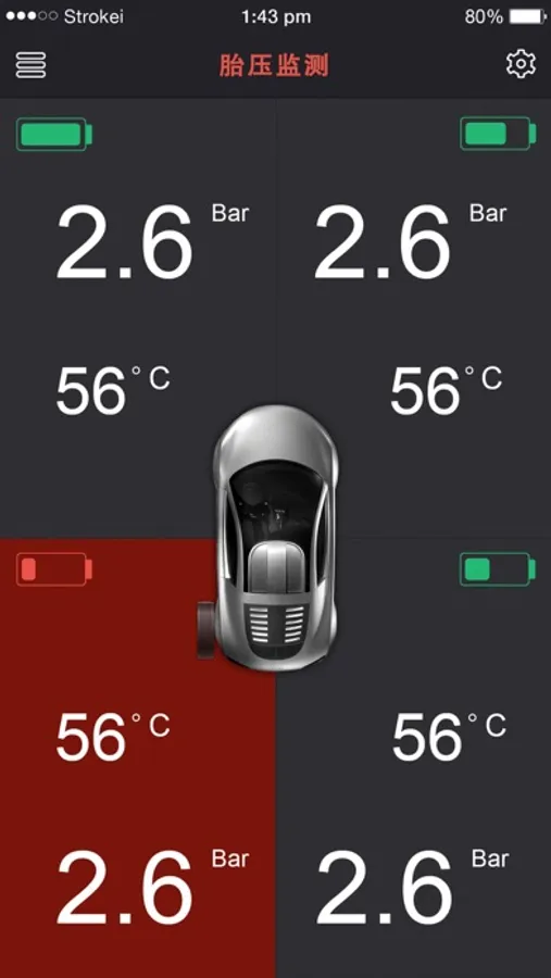 智炫(TPMS)TX500/TN500胎压监测报警器,适用于iphone的应用。驾驶者坐在车内配合手机APP就能轻松监控4个轮胎的胎压和胎温。当轮胎出现气压过低或过高、温度过高、传感器电池电量过低等异常情况时,手机会立即发出警示声和震动来提醒驾驶者,使驾驶者及时减速停车检查轮胎,确保安全驾驶。