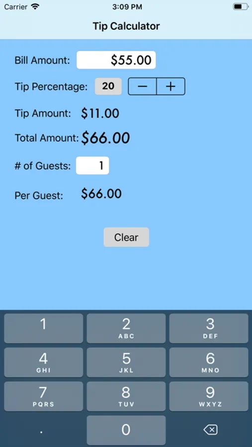 Quickly get the tip and total amount for your bill. Use the stepper to change the tip percentage to get different tip amounts.
