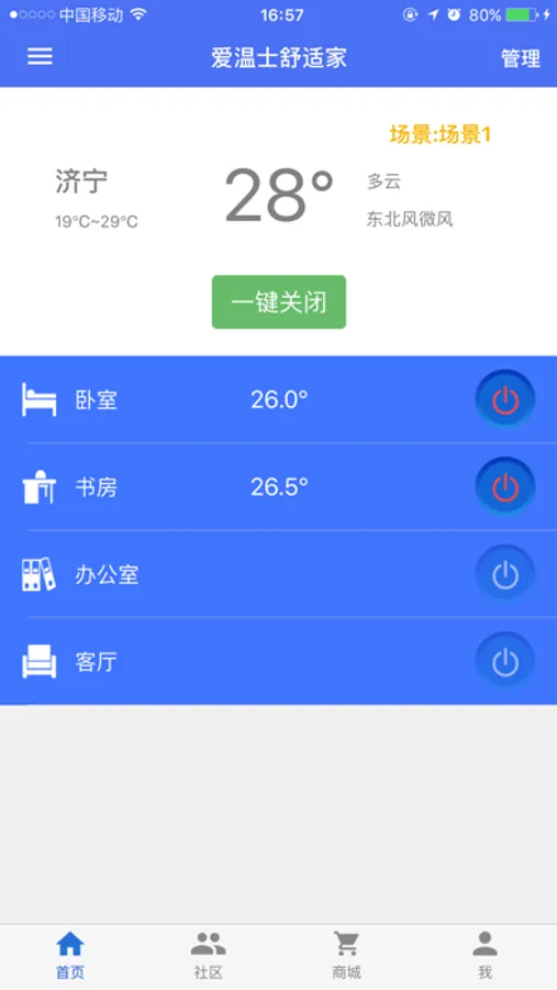 独有爱温士舒适家手机APP,用手机连接家里的路由器,再由WIFI连接各房间终端,无论你身在何处,现在可以一键开启全家的温暖。